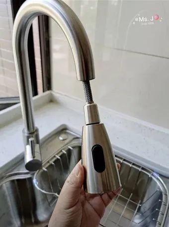 普通的固定水龙头不能移动,冲洗菜篮子、锅、砧板等大件不方便,得就着水龙头来来回回找冲水的角度。要是水槽小一点的,还会磕磕碰碰。