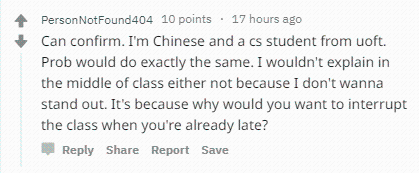 最近,一篇文章在reddit上火了,话题是: 作为老师,你听说过的 最好的迟到理由 是什么? 而一位加拿大助教的回答,竟然引来了2.2万次的点击,说的竟然是一名中国留学生迟到的事。