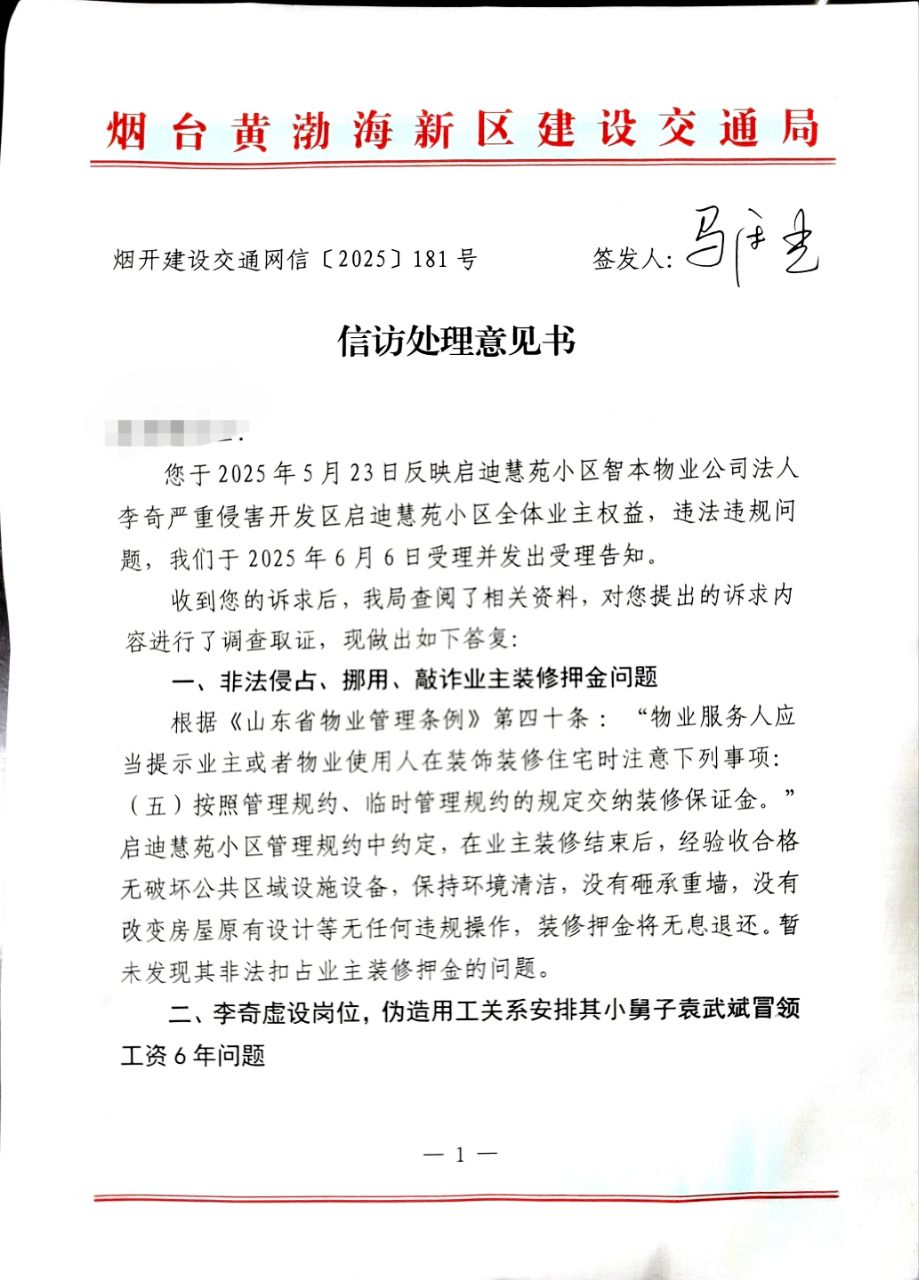 业主上百万装修押金去向不明、上千台灭火器假冒伪劣,合法合规免责? 07-23 22:44阅读 6424 仙境烟台和谐的黄渤海新区,怎容十年人为制造重大消防安全隐患、挪用侵占业主巨款的不法物业? 2025年5月28日,山东省烟台黄渤海新区古现街道启迪慧苑小区千台灭火器全部被烟台智本物业管理有限公司非法清空,偷运躲藏到小区物管房内,物业人员私自造假黏贴假的维修铭牌. 7月6日@山东卫视新闻调查监督曝光#烟台一小区灭火器竟有俩生产日期# 、#灭火器维修铭牌被随意倒卖8元1张# !揭开了烟台智本物业管理有限公司10年人为制造重大消防安全隐患的序幕! 7月17日上午黄渤海新区市场监督管理局经过河北、临沂属地协查,确认烟台启迪慧苑小区的千台灭火器属假冒伪劣范畴~假货! 魔幻不可思议的是:7月17日下午烟台启迪慧苑小区惊显大量国家禁止销售的淘汰灭火器!铭牌上的厂家曾在2025年1月16日因出售劣质不合规灭火器被市场监督管理局行政处罚过!烟台智本物业管理有限公司整改期以假充真,屡教不改,顶风作案! 烟台启迪慧苑小区业主56天持续举报控告不法物业人为制造消防安全隐患 ,疑惑的是,#烟台智本物业公司在整改期内多次耍着花招用假货替换假货#! 业主等待57天的消防造假调查报告、处罚书、整改令、整改结果依然不可见。 6月13日业主群发起履职尽责申请 7月10日业主群发起履职尽责申请 #烟台启迪慧苑小区每户安全出口的消防器材步阳牌GB 12955-2008甲级隔热推闩式防火门的一键开启快速逃生功能全被不法物业破坏失灵#! 国标甲级隔热防火逃生门防火锁全被破损篡改 有的逃生门用钥匙也打不开!烟台智本物业谁指使你们胡搞这不法事?那一千多个隔热防火门的锁具可是国标GB30051防火锁! 烟台启迪慧苑小区火情频发 。 #烟台智本物业管理有限公司人为制造重大消防安全隐患长达10年# ,小区大门的消防通道被智本物业公司挂锁封死八九年了. 2022年的那场火灾,消防通道打不开,消防车绕道进小区受阻行进困难! 烟台启迪慧苑小区消防通道堵死不通,灭火器是假的,业主室内逃生安全出口甲级防火门开启失灵,一旦发生火灾,2000多业主将会多么绝望无助!! 涉严重刑事责任的挪用、侵占、砸承重墙、消防造假行为,古现街道和住建局竟出个”不属实”“未发现”的结论! 古现街道办事处和住建局履职背书担保智本物业挪用侵占业主巨款合法合规没有问题! 捏造虚构招投标非法进小区收费的烟台智本物业管理有限公司,已不仅仅是人为制造重大消防安全隐患,更涉勒索业主巨额装修押金非法挪用侵占长达十年!!!古现街道办事处韩旭副书记和住建局马X光在履职函公文中做智本物业非法利益的代言人,认定智本物业合法合规没有问题,拒绝业主的履职申请,信口雌黄业主举报“不属实”! #呼吁山东省烟台市黄渤海新区管委主任烟台市常委督办问责追责智本物业!# #呼吁烟台市纪委监察委调查滥用职权玩忽职守渎职失职的不法物业的利益代言人!# 业主十问盘踞烟台启迪慧苑小区10年之久的不法物业和目无法纪跪舔不法物业的利益代言人: 1.#何时公开对10年消防造假的智本物业公司的行政处罚?# 2.#烟台智本物业千台灭火器10年造假是否触犯刑法?# 3.#烟台智本物业大肆挪用侵占业主巨额装修押金何故刑侦立案难?# 4.#何故不依民法典、物业管理条例、审计法对烟台智本物业挪用侵占巨额装修押金账务依法审计?# 5.#为何不紧急冻结烟台智本物业的资金账户以防业主押金巨款被挥霍一空或卷款跑路?# 6.#黄渤海新区古现街道和住建局何故包庇纵容智本物业大肆挪用侵占业主装修押金去向不明合法合规没有问题?# 7.#烟台智本物业老板拆掉剪力抗震墙住建局搞个“定性未发现”是渎职还是不称职?# 8.#烟台智本物业捏造虚构招投标伪造公文,住建局何人授意开绿灯虚假备案利益输送?# 9.#古现街道办事处和住建局用物业人员不靠谱的“包干制”托辞,包庇纵容烟台智本物业老板虚列安保岗位給小舅子吃空饷职务侵占刑责,是利益驱使还是滥权渎职?# 10.#烟台智本物业是否应该拉入黑名单吊销执照?# 在此为依法行政的黄渤海新区市场监督管理局的工作人员点赞,依法履职河北、临沂等地朔源协查清了销售端的上千台假冒伪劣灭火器!为守护民众生命财产安全、排除重大消防安全隐患踢开了头三脚! |
