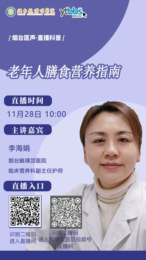 老年健康,重在平衡,而成于管理。体重问题看似简单,实则关联着营养、运动、慢病与个体差异等多重维度。为帮助大家系统掌握科学方法,我们特邀烟台毓璜顶医院临床营养科李海娟将为大家带来老年人膳食指南分享, ...