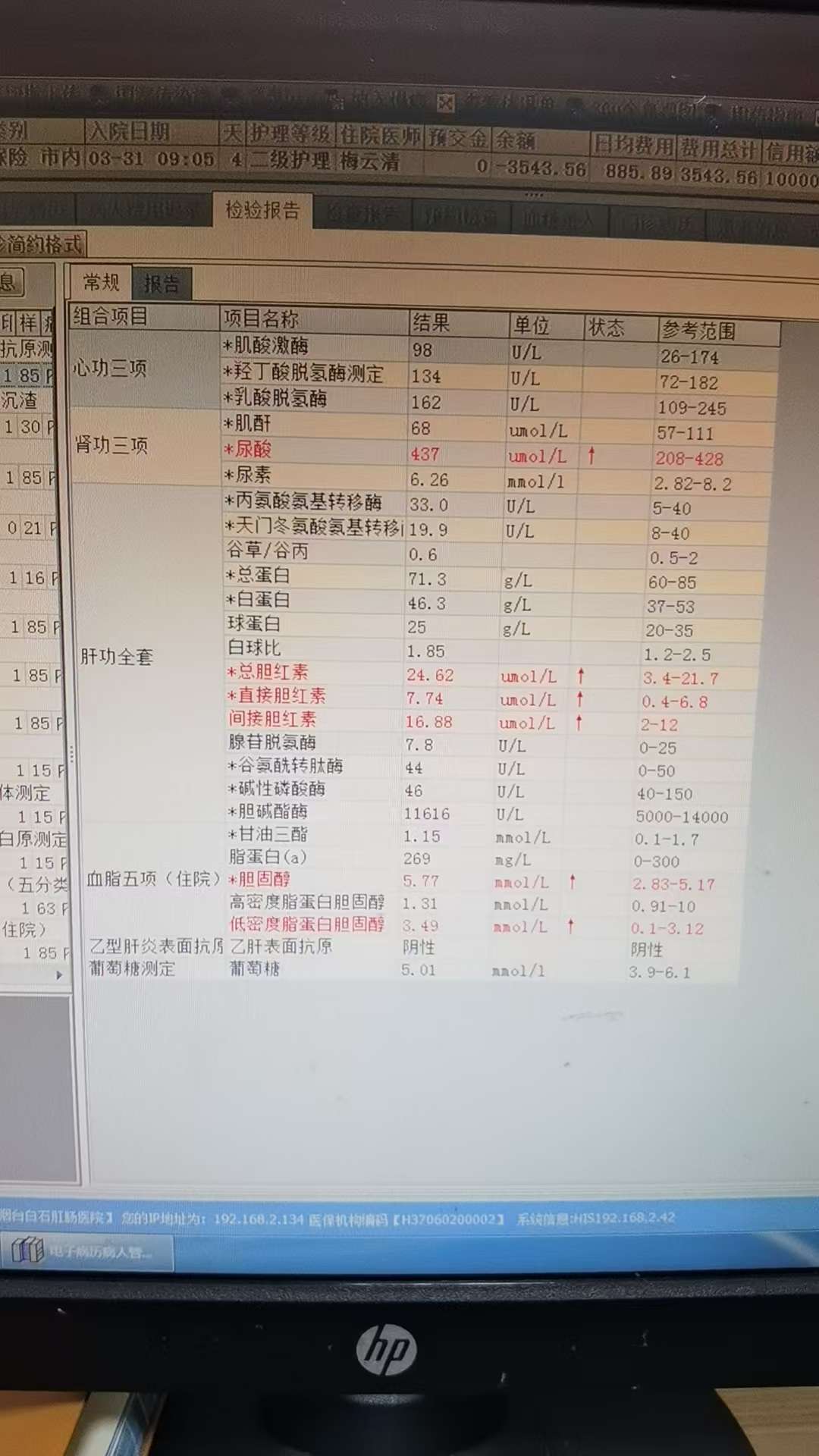 豆包给的分析结果:从你提供的化验单来看,心功能、大部分肝功能指标、肾功能(除尿酸外)、葡萄糖及乙肝表面抗原均正常,主要存在尿酸轻度升高、胆红素轻度升高、血脂异常(胆固醇及低密度脂蛋白胆固醇升高) 这几类问题,具体分析如下: 一、异常指标及解读 1. 尿酸(437 umol/L,参考值208-428) 轻度高于正常范围,提示可能存在高尿酸血症风险。长期升高可能增加痛风、肾脏损伤的风险,短期轻度升高可能与饮食(如高嘌呤食物摄入多)、饮水少、饮酒等因素相关。 2. 胆红素相关(总、直接、间接均升高) 总胆红素(24.62 umol/L,参考值3.4-21.7) 直接胆红素(7.74 umol/L,参考值0.4-6.8) 间接胆红素(16.88 umol/L,参考值2-12) 三者均轻度升高,可能提示胆红素代谢轻度异常,常见原因包括轻微肝胆代谢问题、近期饮酒、熬夜,或溶血相关(需结合血常规等其他检查排除),单纯轻度升高多无明显临床症状,需结合是否有黄疸(皮肤、眼睛发黄)进一步判断。 3. 血脂异常 胆固醇(5.77 mmol/L,参考值2.83-5.17) 低密度脂蛋白胆固醇(3.49 mmol/L,参考值0.1-3.12) 二者均升高,低密度脂蛋白胆固醇是“坏胆固醇”,长期升高会增加动脉粥样硬化、心脑血管疾病(如冠心病、脑梗)的风险,属于心血管疾病的危险因素。 二、正常指标说明 心功三项(肌酸激酶、羟丁酸脱氢酶、乳酸脱氢酶):均在正常范围,提示当前心肌细胞无明显损伤,心功能基本正常。 肾功能(肌酐、尿素):正常,说明肾脏排泄功能无明显异常。 肝功能其他指标(转氨酶、总蛋白、白蛋白、谷氨酰转肽酶等):正常,排除明显肝细胞损伤、肝脏合成功能异常。 葡萄糖(5.01 mmol/L):正常,排除当前血糖升高(糖尿病或糖耐异常)。 乙肝表面抗原:阴性,说明未感染乙肝病毒。 三、建议 1. 饮食调整: 低嘌呤饮食:减少动物内脏、海鲜、啤酒、浓汤等摄入,多饮水(每日1500-2000ml),促进尿酸排泄。 低脂低胆固醇饮食:减少肥肉、油炸食品、动物油摄入,增加蔬菜、水果、全谷物、优质蛋白(如鱼、瘦肉、豆制品)。 2. 生活方式改善: 规律作息,避免熬夜、饮酒,减少肝胆代谢负担。 适当运动:每周进行3-5次中等强度运动(如快走、慢跑),每次30分钟,帮助调节血脂。 3. 复查建议: 1-2个月后复查尿酸、血脂、肝功能(重点胆红素),观察指标是否恢复正常。 若有胸闷、关节疼痛、皮肤发黄等症状,及时就医。 4. 就医提示: 若复查后血脂、尿酸仍持续升高,或胆红素进一步升高,建议咨询内分泌科(调血脂、尿酸)、消化内科(查胆红素异常原因) |