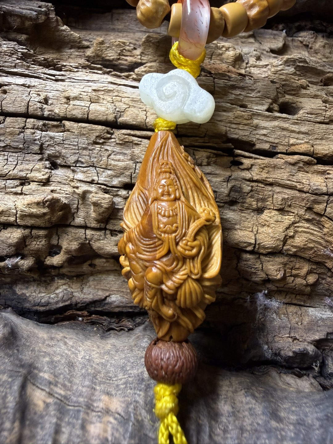 橄榄核纯手工雕刻,童子拜观音。