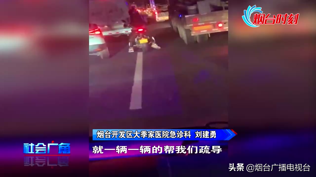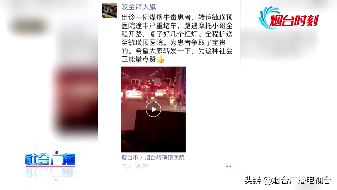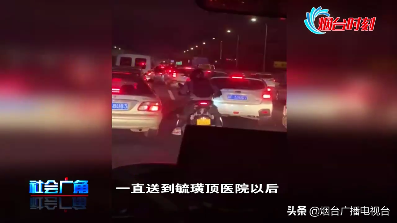 昨天下午5点钟,烟台经济开发区大季家医院接到了出诊任务,一位患者因为煤烟中毒陷入昏迷,急需转送到毓璜顶医院进行救治。因为是下班高峰期,救护车在转送患者的途中,堵车严重。这时,一位骑摩托车的身影出现了。