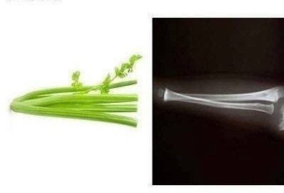 传言:芹菜——骨骼:芹菜等很多根茎类蔬菜看起来就像人的骨头,而它们确实能强化骨质。人骨头中含有23%的钠,而这些食物也含有23%的钠。