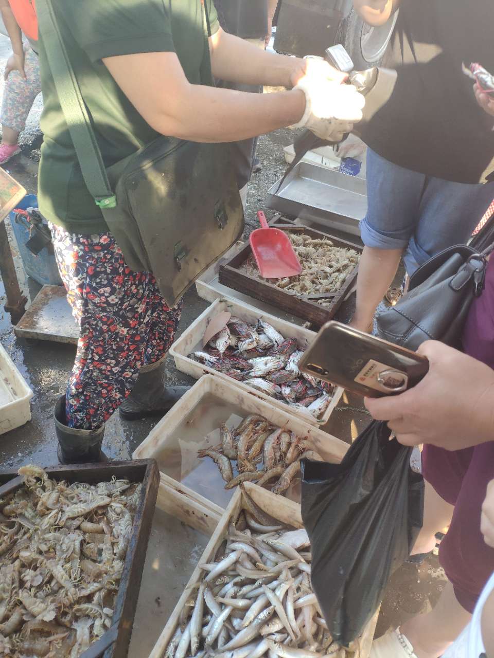 大部分贩子都是拿着事先准备好的鱼虾跟着船转一圈 然后冒充是刚打上来的,借机买高价