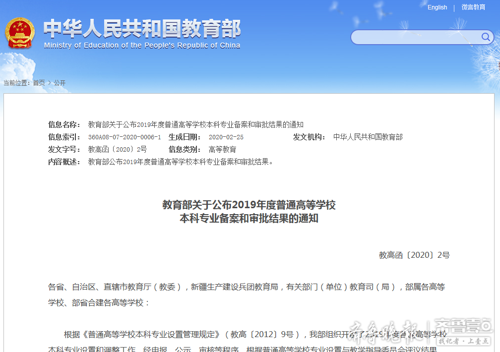 烟台南山学院“过程装备与控制工程”和“数据科学与大数据技术”2个专业获批,将于2020年正式招生。经此次获批,该校本科专业总数已达45个,涵盖工学、管理学、经济学、文学、艺术学和医学六大学科门类。