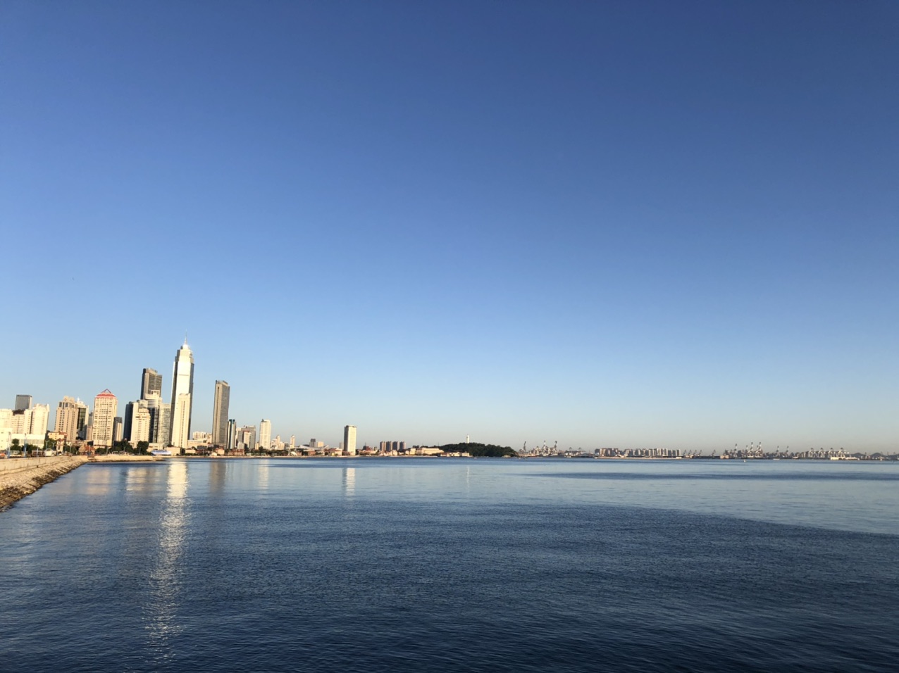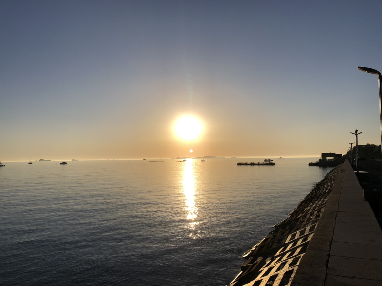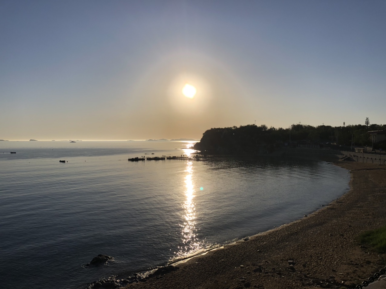 周一快乐!今晨烟台海边风平浪静晴天,涨潮中~《6月1日烟台天气预报:早上好,今天是6月1日,星期一,农历闰四月初十 ,今日儿童节。烟台天气:阴转雷阵雨,温度 16 ~ 26℃,南风5-6级,日出时间 04:38,日落时间 19:11,降雨量 7.5mm,湿度 60%RH。实时:晴,气温 16℃,西南风4级,湿度 54%RH,气压 999Pa,紫外线强度 1级,能见度 30000米。》