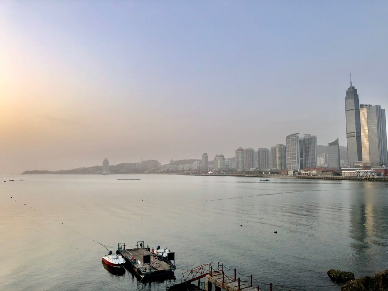 周一快乐!今晨烟台海边风平浪静少云转多云有轻雾,涨潮中~《3月29日烟台天气:早上好,今天是3月29日,星期一,农历二月十七。烟台天气:多云转晴,温度 3 ~ 10℃,西北风3-4级转南风3-4级,日出时间 05:47,日落时间 18:16,降雨量 0.0mm,湿度 38%RH。实时:多云,气温 10℃,西风3级,湿度 30%RH,气压 994Pa,紫外线强度 1级,能见度 19916米。》