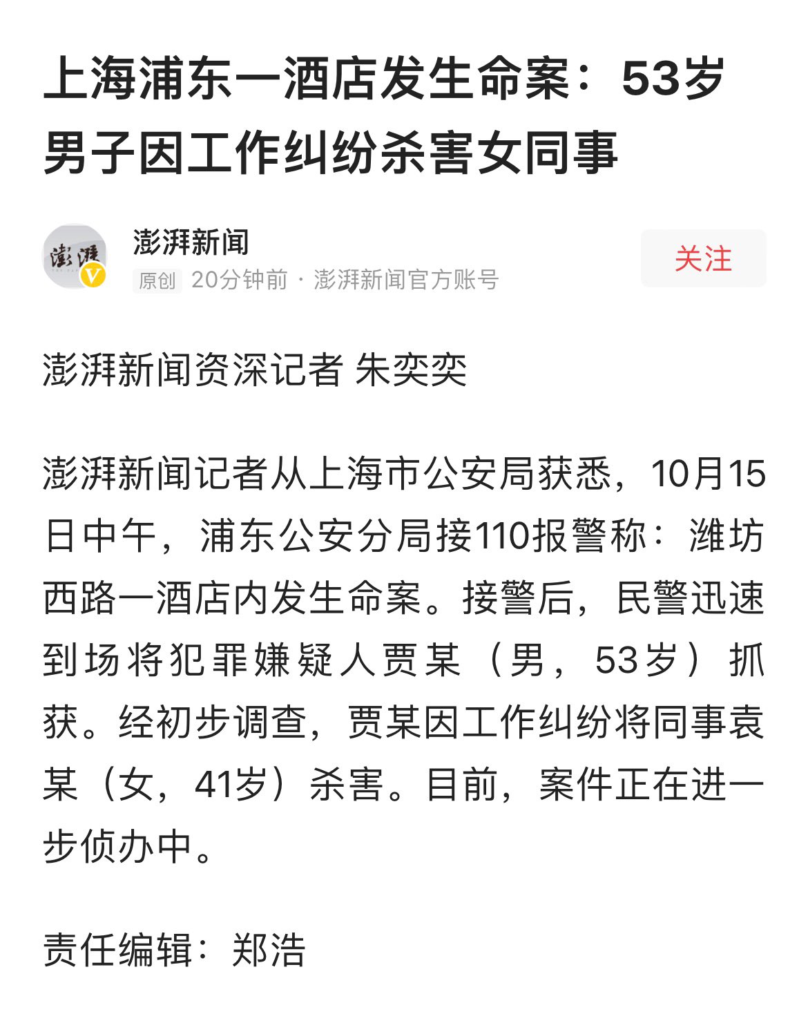ÉϺ£ÆÖ¶«Ò»¾Æµê·¢ÉúÃü°¸£º53ËêÄÐ×ÓÒò¹¤×÷¾À·×ɱº¦Å®Í¬Ê |