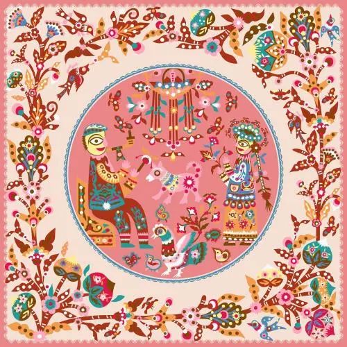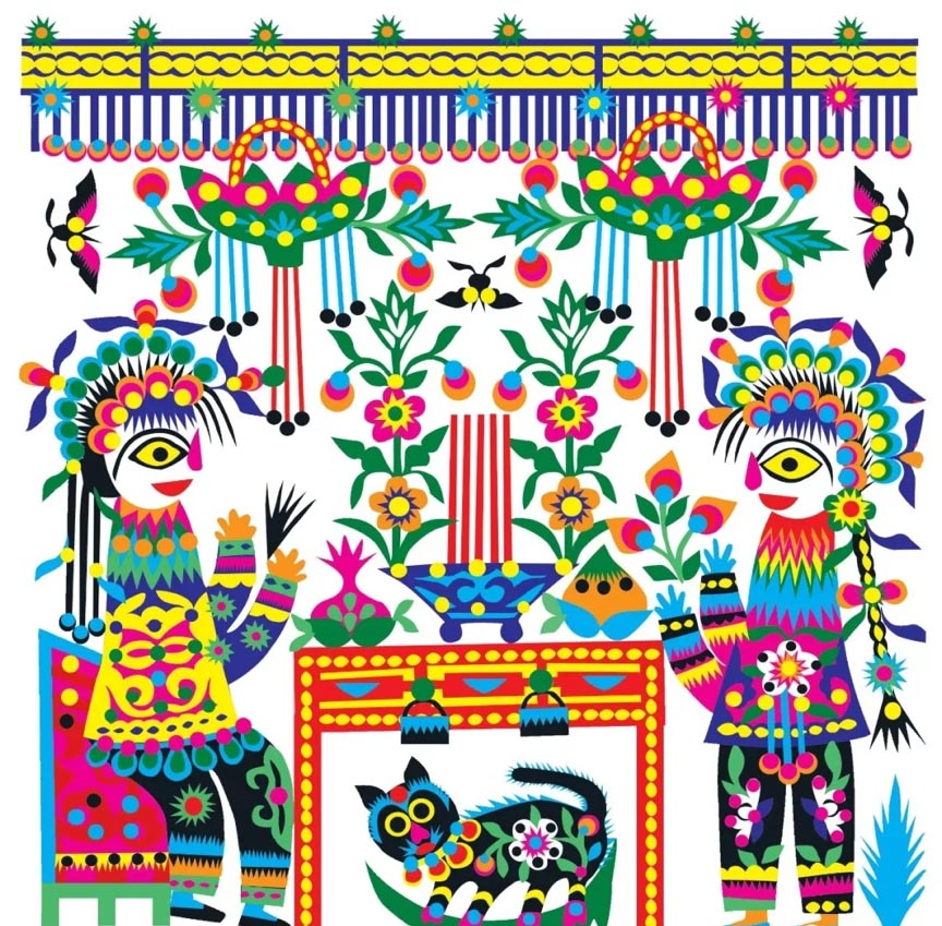 彩色套贴剪纸一般在民间达不到这么精微,但库淑兰的作品比其他人高出一截。