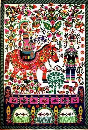 库淑兰还创作过另一幅代表作《江娃拉马梅香骑》。