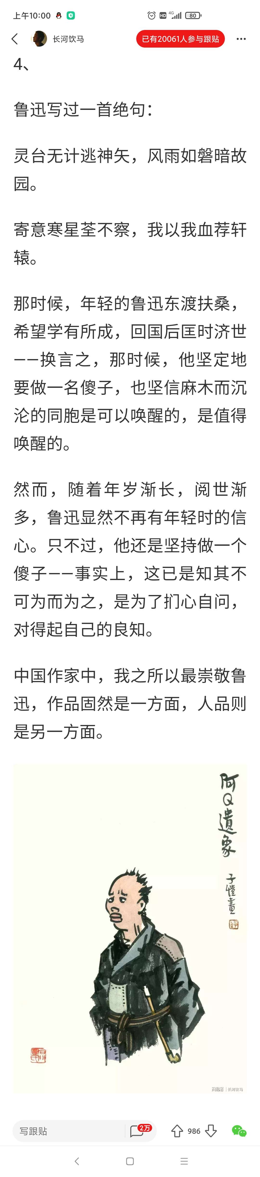 另外,一定不要用罕见来跟鲁迅先生比,鲁迅先生说过: