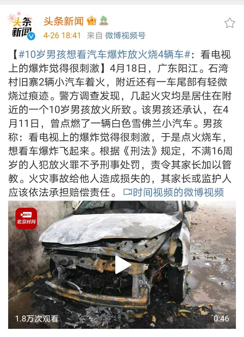 ¼Ò³¤Ôõô½ÌµÄ£¿10ËêÄк¢Ïë¿´Æû³µ**·Å»ðÉÕ4Á¾³µ |