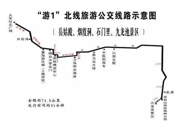 早晨8:00从火车站北广场出发,途经岳姑殿、烟霞洞、石门里,到达九龙池景区;下午15:30从九龙池景区返回烟台。