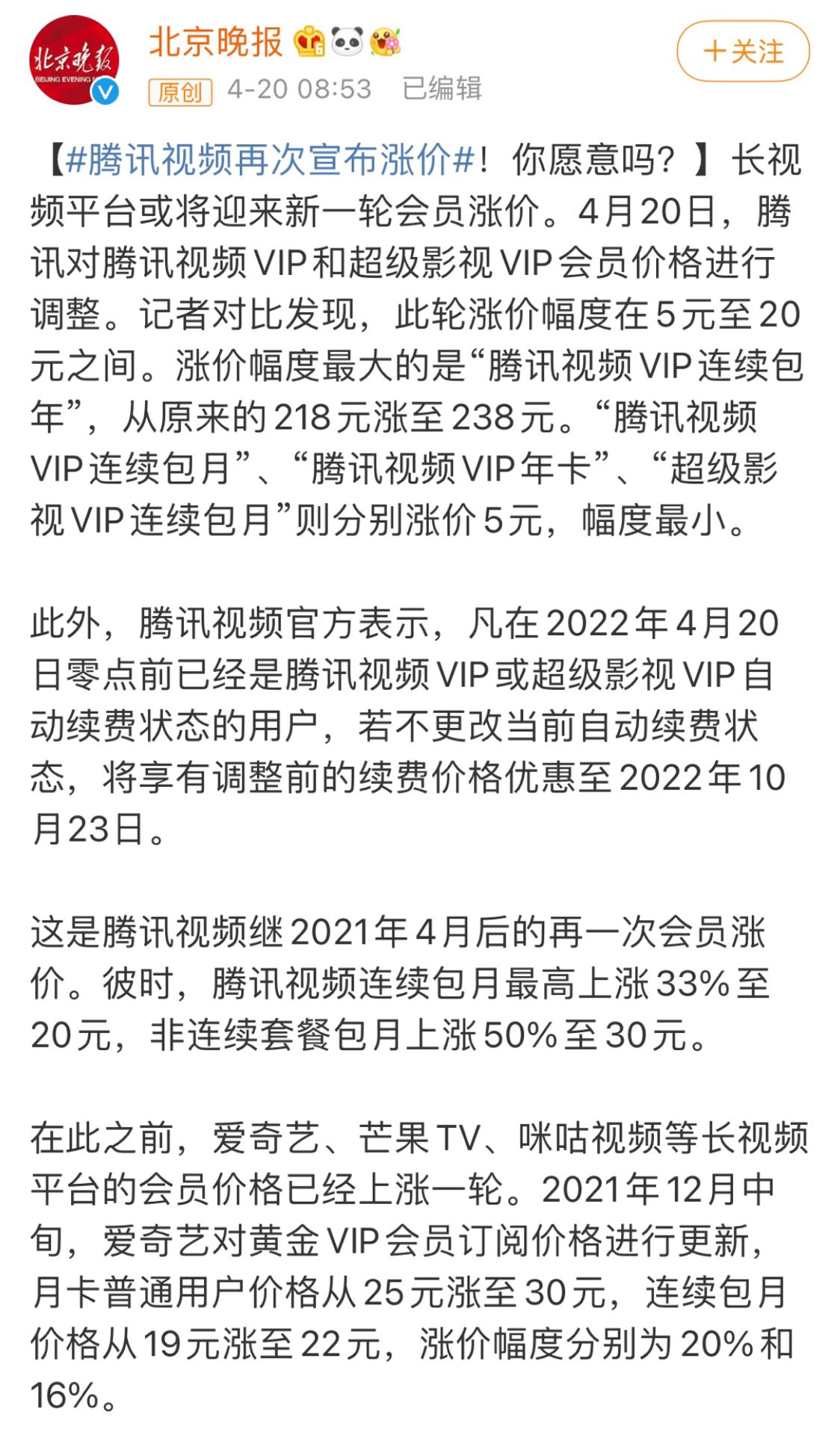 ÌÚѶÊÓÆµÔÙ´ÎÐû²¼ÕǼۣ¬ÕâÕǼÛûͷÁ˰¡ |